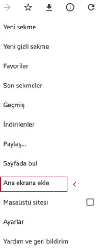 “Ana Ekrana Ekle” butonuna tıklayın.
